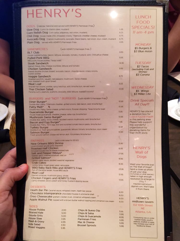 Welcome to Henry's Midtown Tavern, a culinary gem nestled in the heart of Atlanta, GA. Known for its vibrant American fare, the menu boasts an array of mouthwatering options that cater to all tastes. From juicy burgers to delectable salads, there's something for everyone.